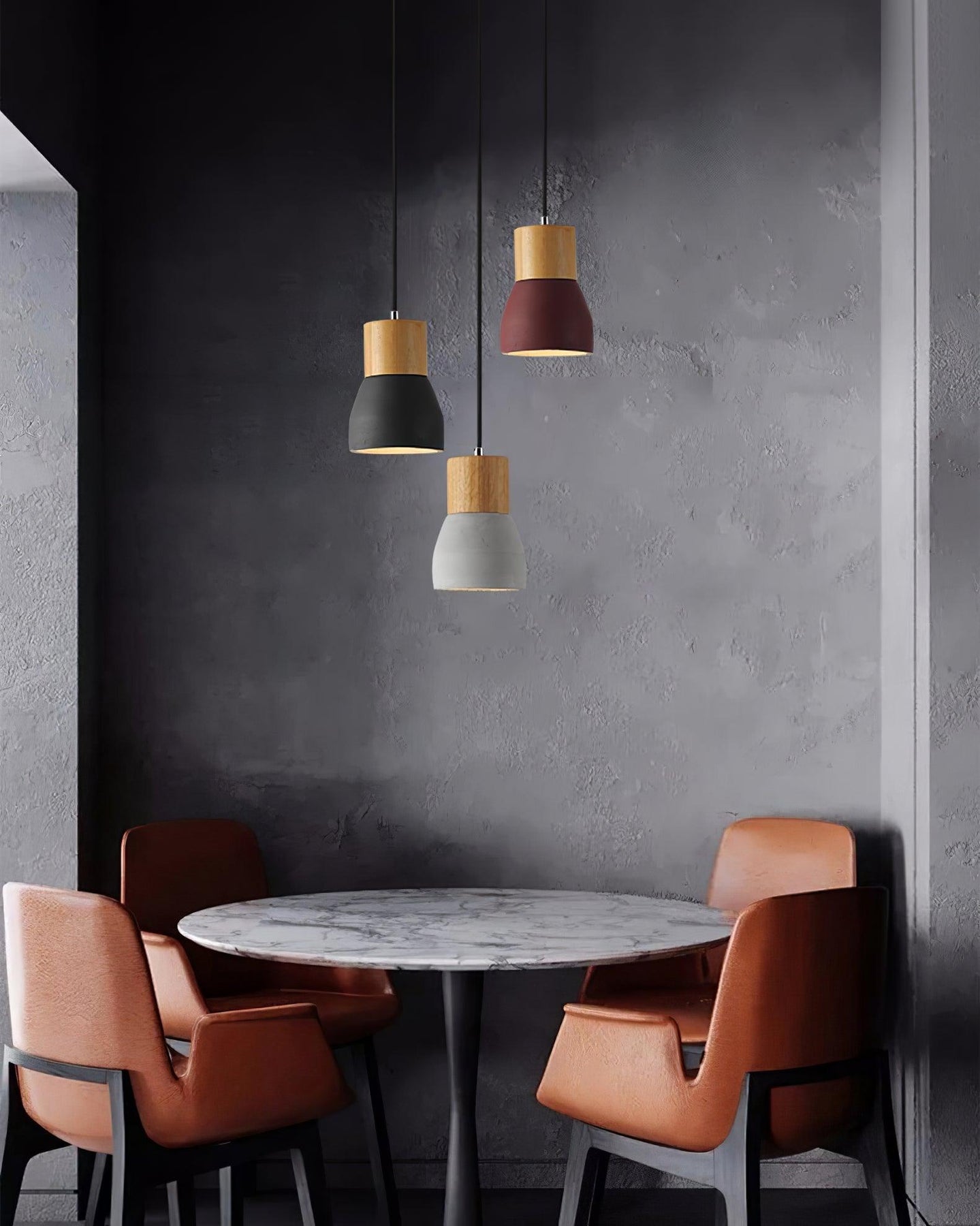 Wood and cement drop lights are a perfect addition over your kitchen island for classy lighting. Choose one color or spice it up and hang multiple colors to give your kitchen an upbeat fun vibe.