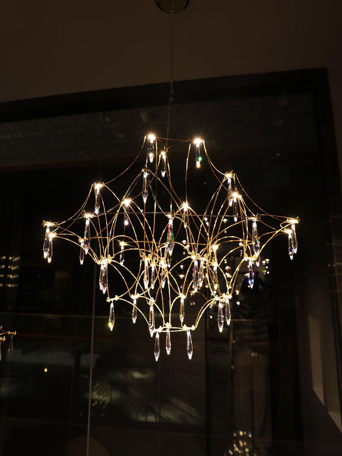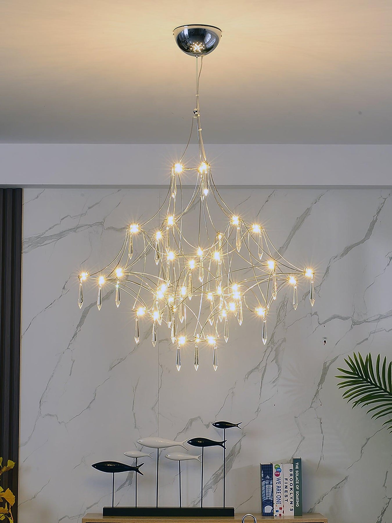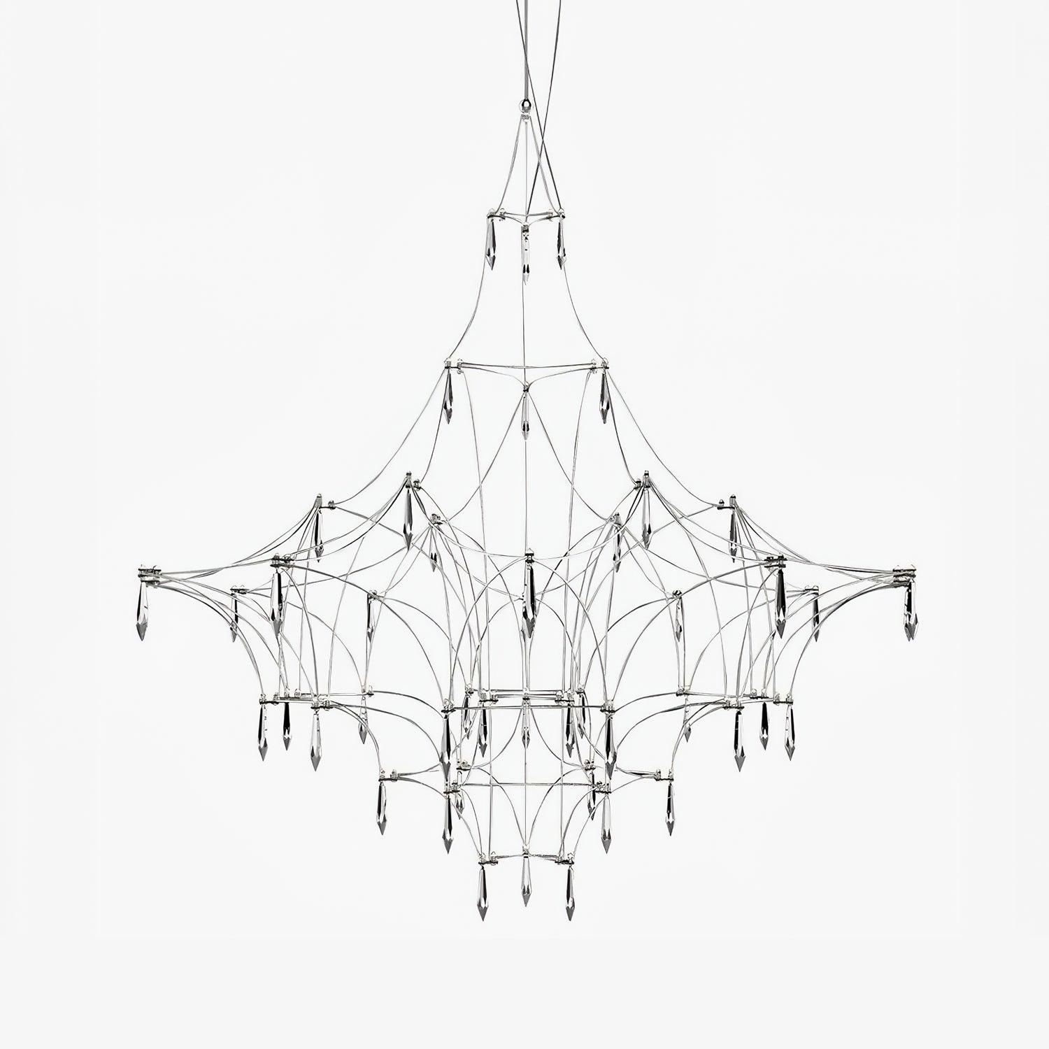 A sea of light from small stars. The trendsetting produces this luminaire with durable Stainless Steel and Crystal. The chosen materials make this luminaire appear like a light net despite being durable and resistant. The elaborately used crystals break and reflect the light of the numerous small illuminants, creating a fascinating play of light.