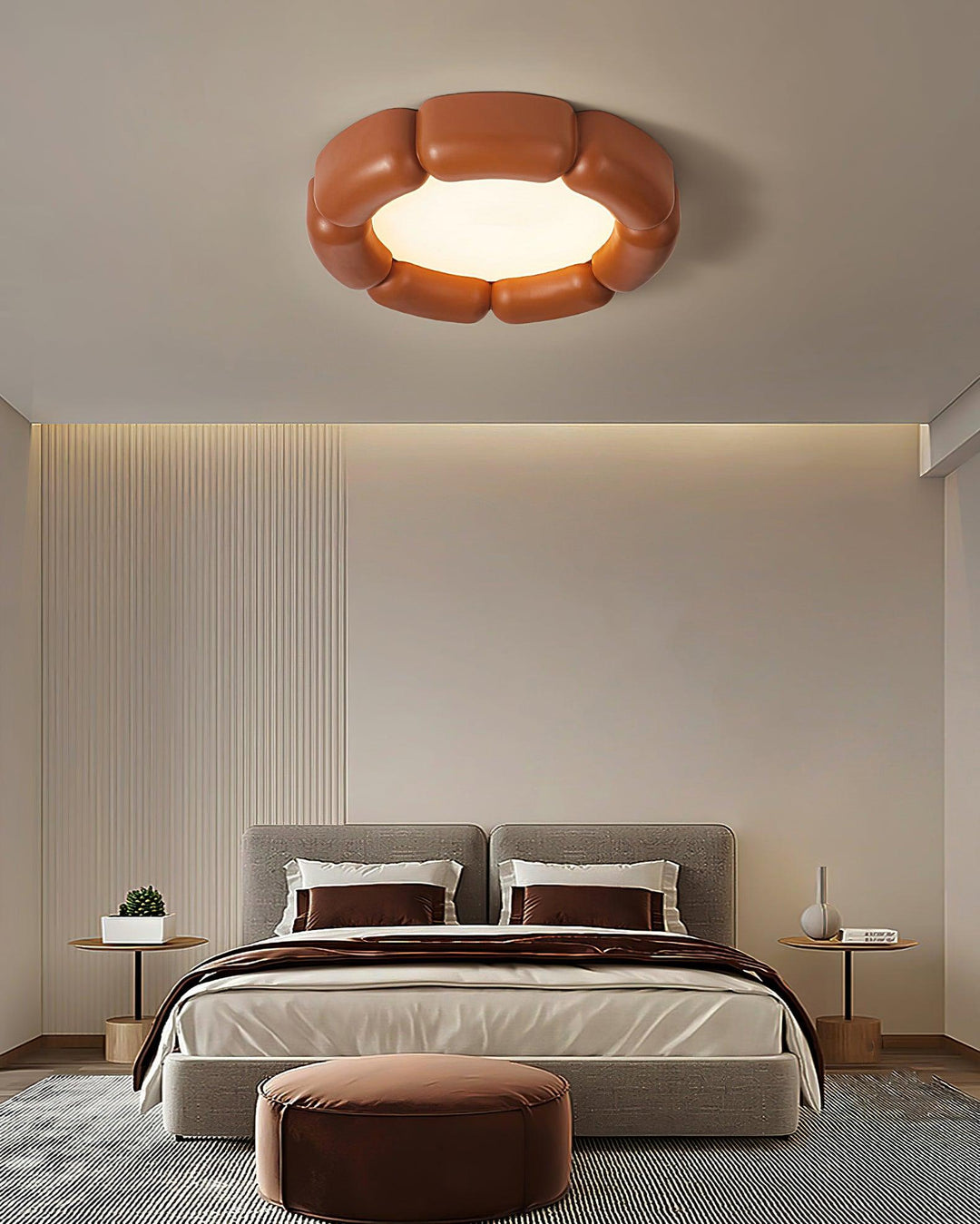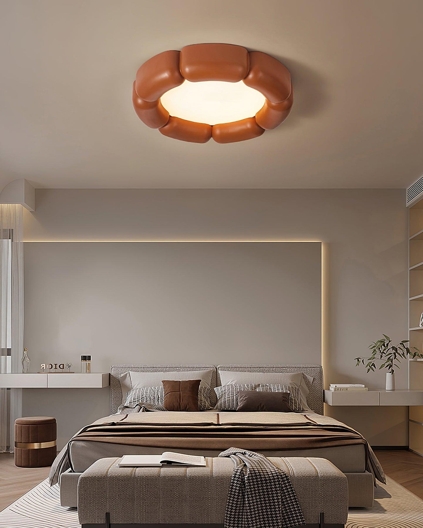Ceiling Fixtures: Bedrooms benefit from soft, ambient lighting. Use the room dimension formula to ensure the ceiling fixture is properly scaled. Semi-flush or flush mounts work well for general lighting, while sconces or bedside lamps provide focused task lighting.