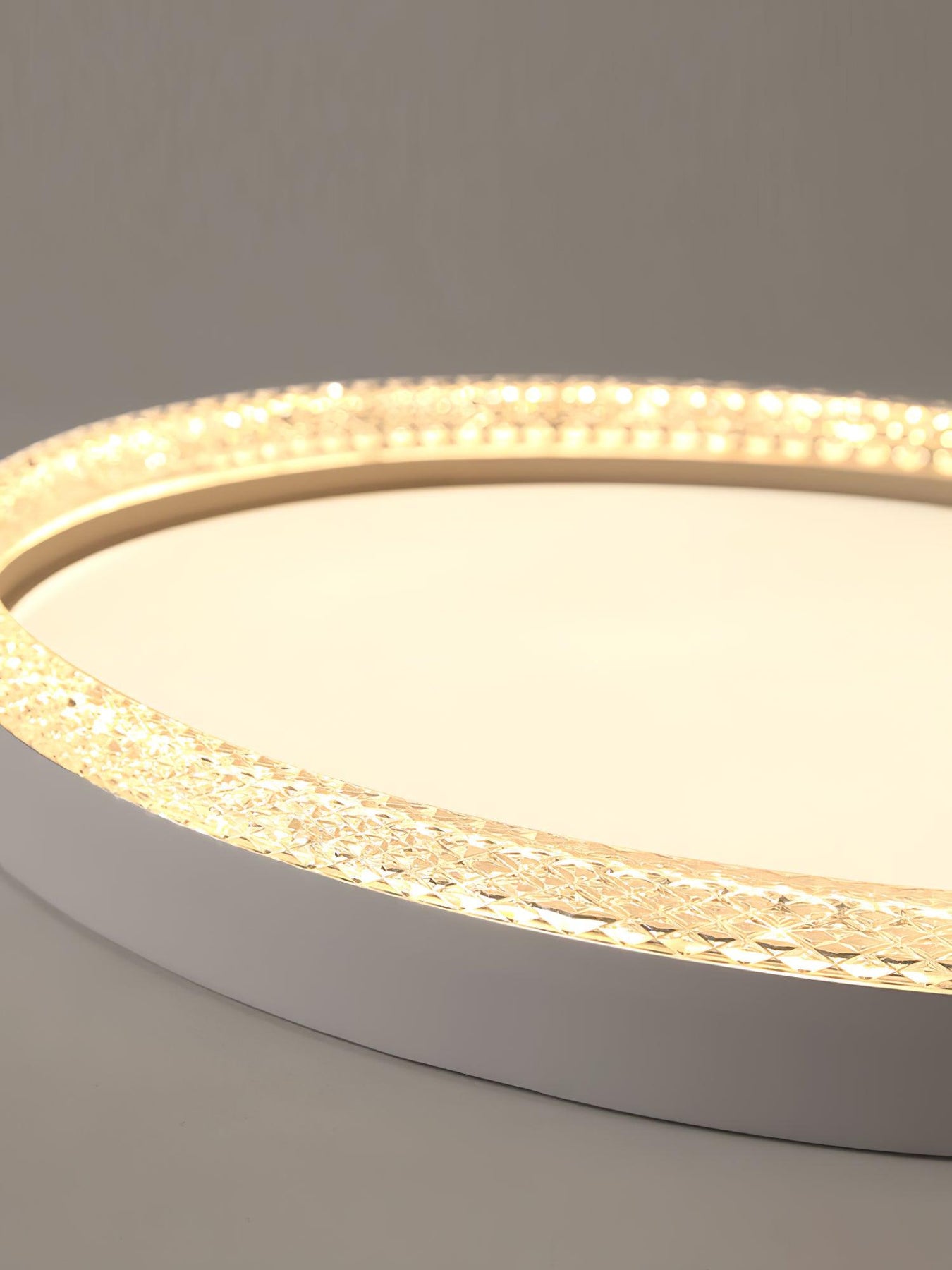 The sleek minimalistic design of this flush fitting features a standard white round diffuser with a clear, uniquely cut acrylic edging to add dimension to the design and produce intriguing shadows thrown from the integral LEDs. This is an ideal option for a low ceiling room.