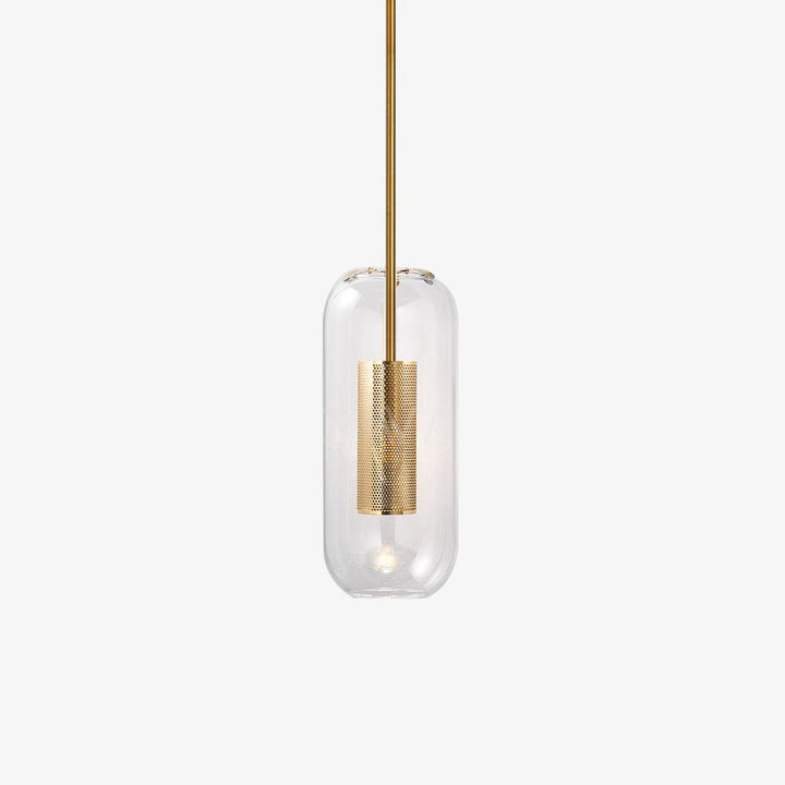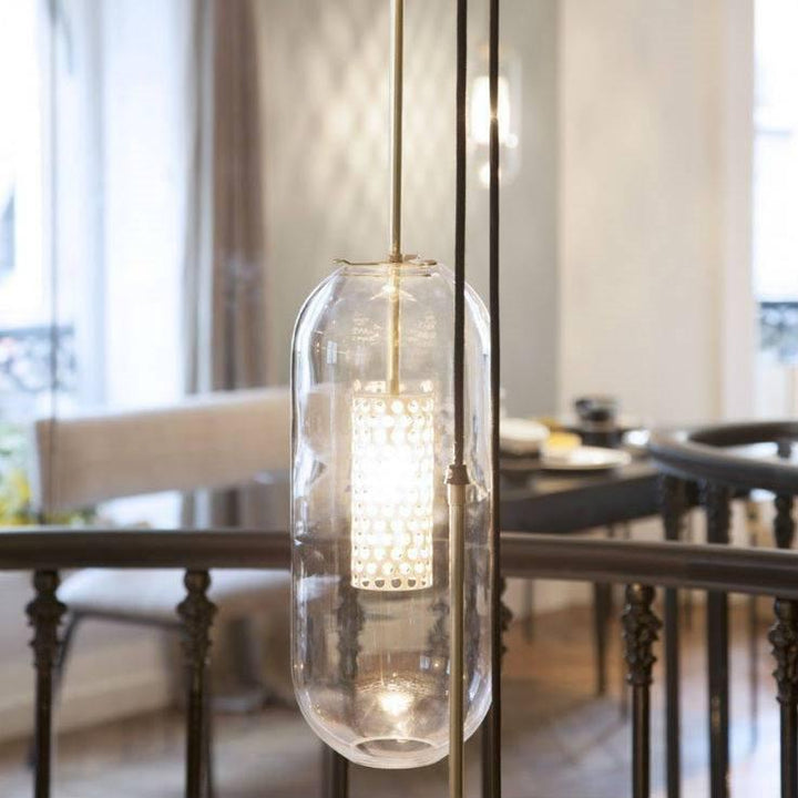 Iconic of the House, the Vadim suspension gives off a soft light which will know how to sublimate your interior. With its pure lines, Vadim features a golden steel rod on which the bulb is suspended, set with a perforated cage that lets the light shine through. The generous glass bulb contrasts with the delicacy of its steel stem and gives it elegance and timelessness.