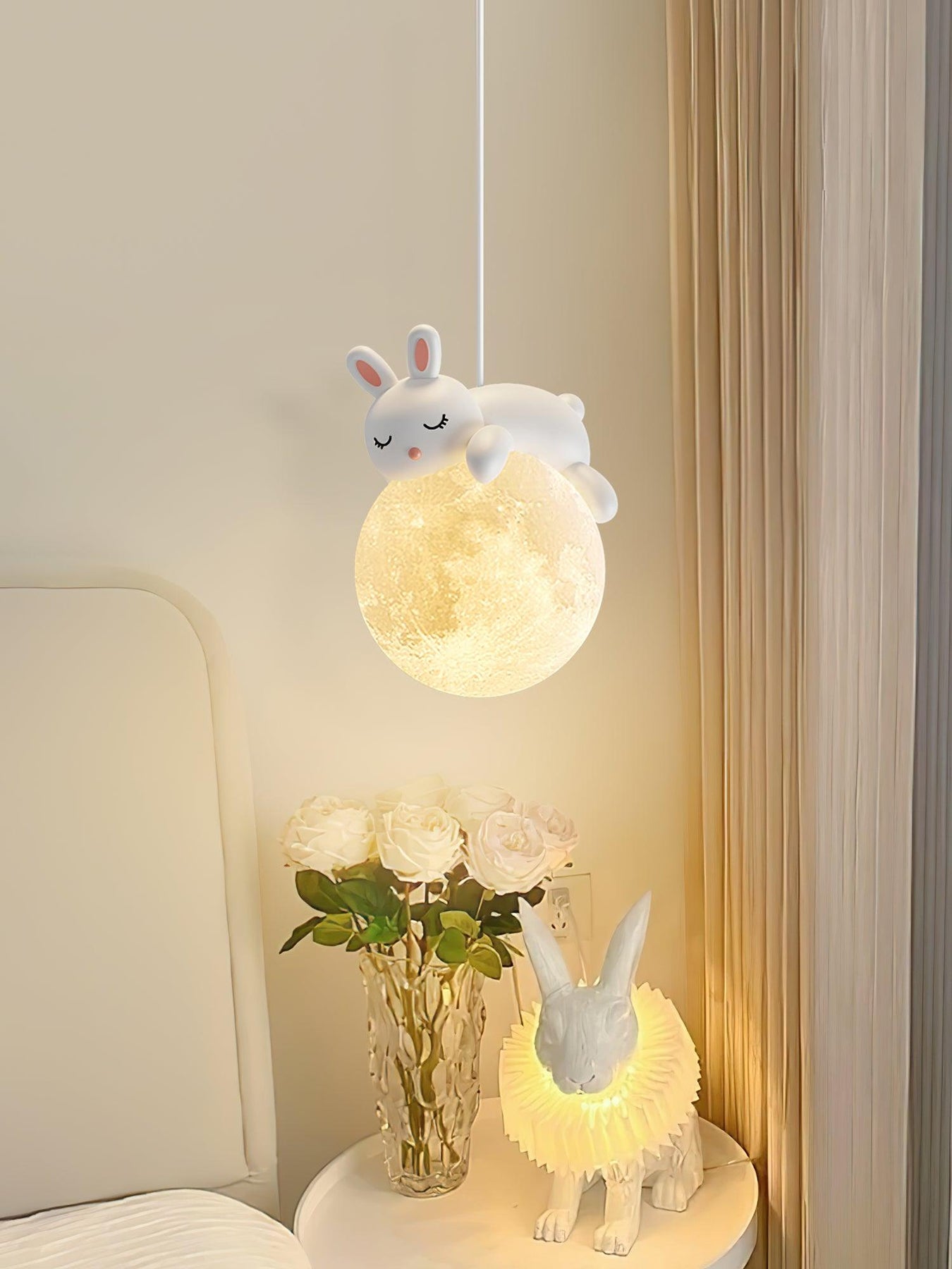 This Animal Sleeping Pendant Lamp will create a warm and cozy atmosphere for any child's bedroom. Its 3D-printed bear and moon design is crafted from durable resin and iron, making it an attractive and long-lasting light fixture. Illuminate any room with this one-of-a-kind piece.