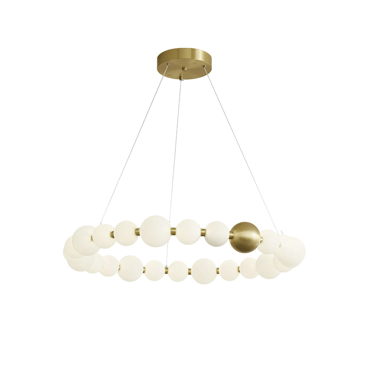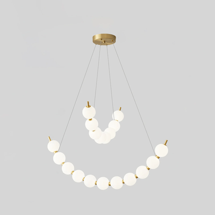 Enhance your home with our Acrylic Pearls Chandelier. Made with a brass base and white plastic orbs, this stylish chandelier combines a unique design with universal appeal. Its lighting forms will create a warm and welcoming atmosphere for gatherings and quality family time.