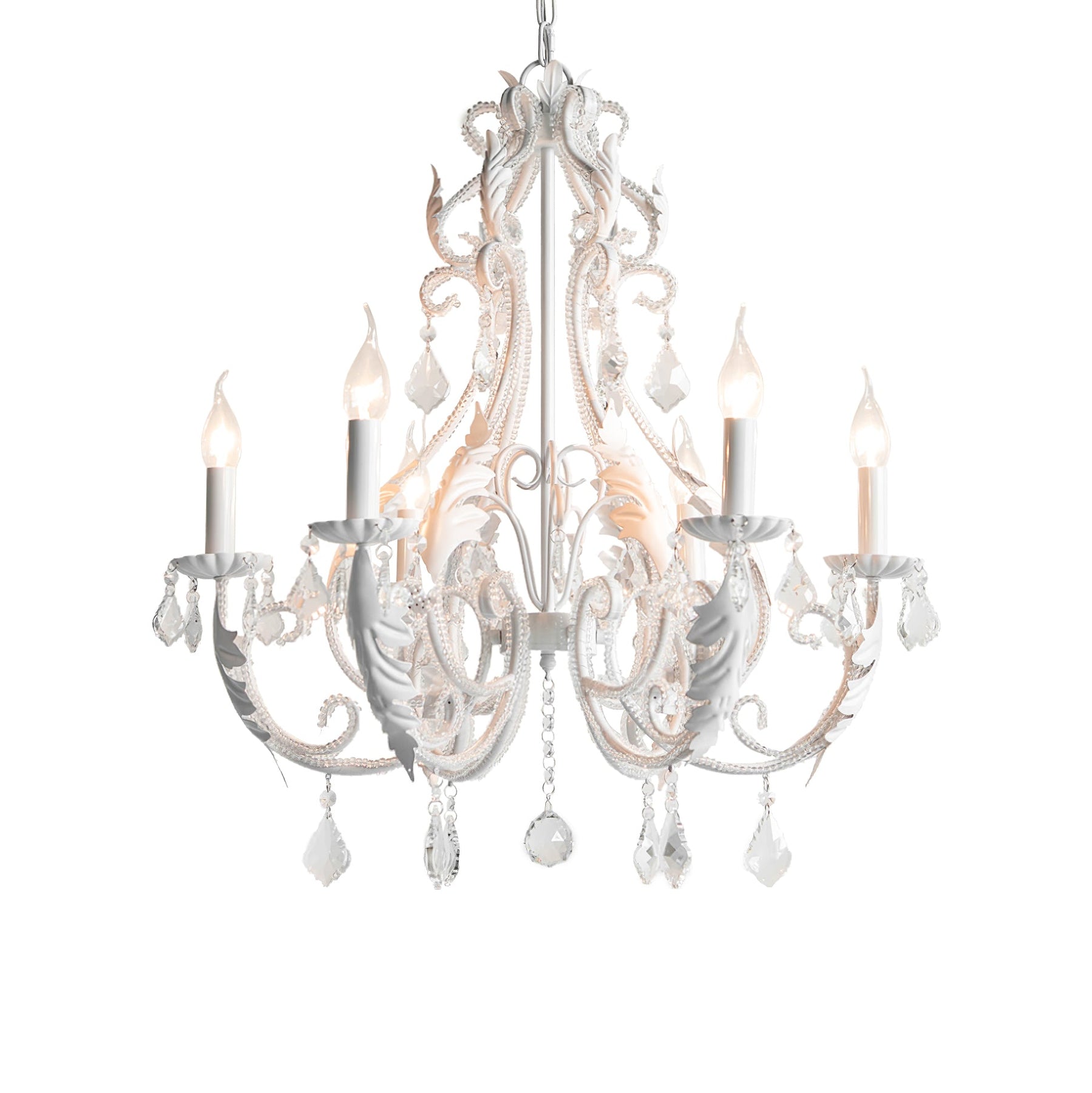 With a mix of scrolling arms, glittering crystal beads and delicate botanical accents, our chandelier exhibits equal amounts of genteel sweetness and unabashed grandeur.