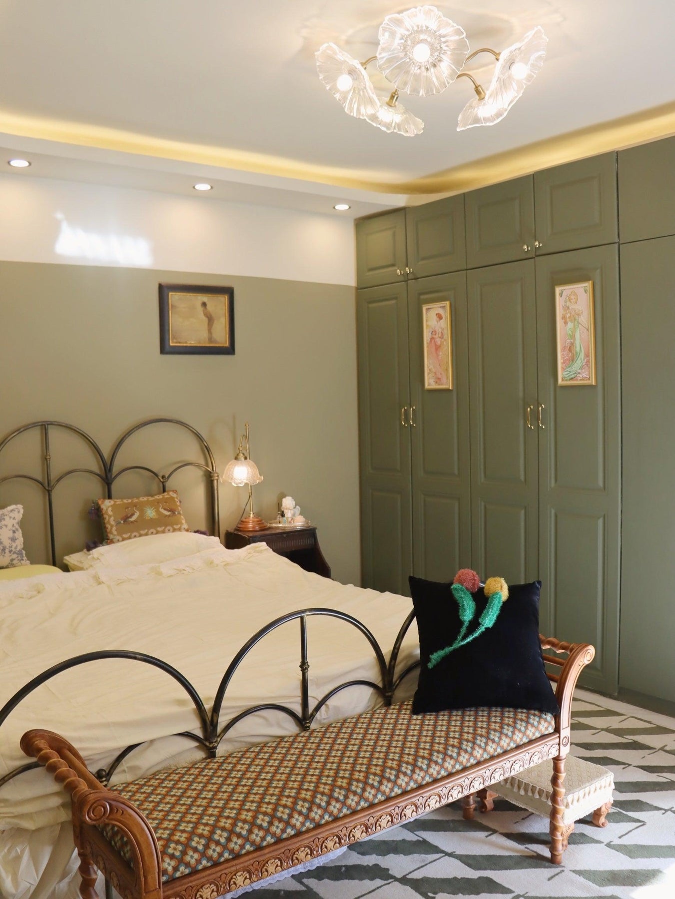 Ceiling Fixtures: Bedrooms benefit from soft, ambient lighting. Use the room dimension formula to ensure the ceiling fixture is properly scaled. Semi-flush or flush mounts work well for general lighting, while sconces or bedside lamps provide focused task lighting.