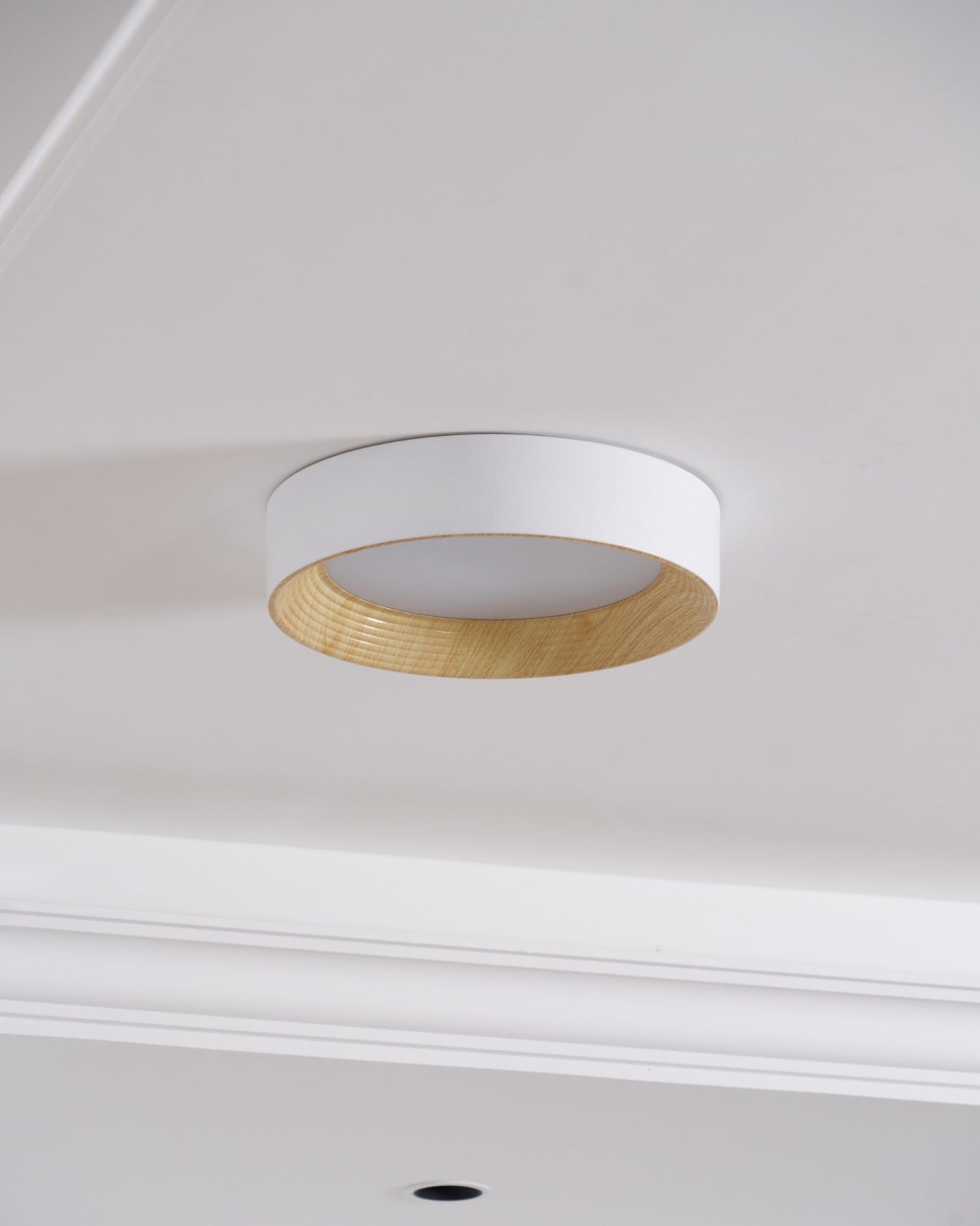 The Oreen Ceiling Lamp has two color options, wooden and walnut, and includes a three-color dimming feature. A high-transmittance acrylic lampshade ensures bright lighting and visual appeal.