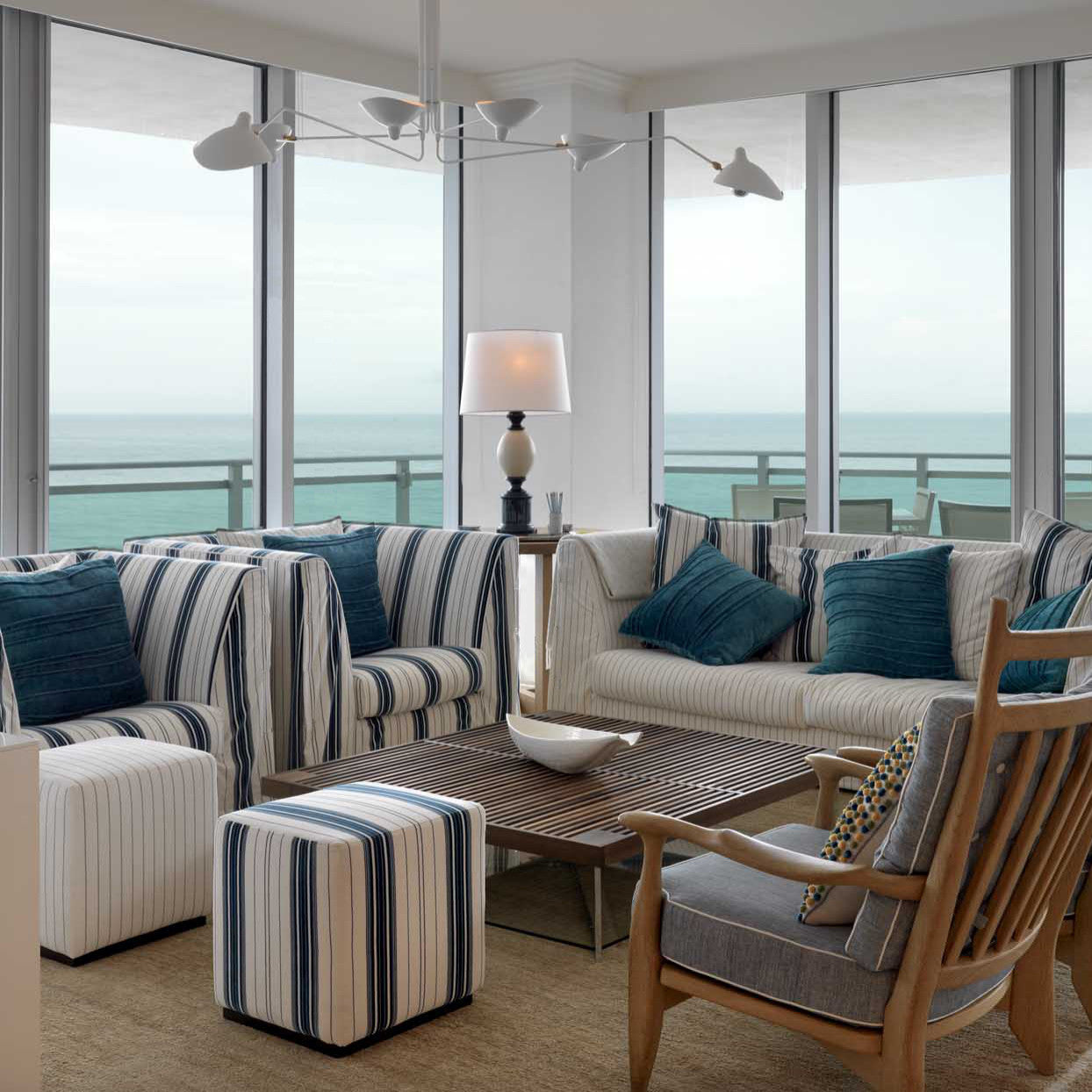 • Task Lighting: Table and floor lamps add layers of light that are perfect for reading or highlighting specific areas of the room. Ensure that floor lamps are proportionate to the size of the furniture they accompany.