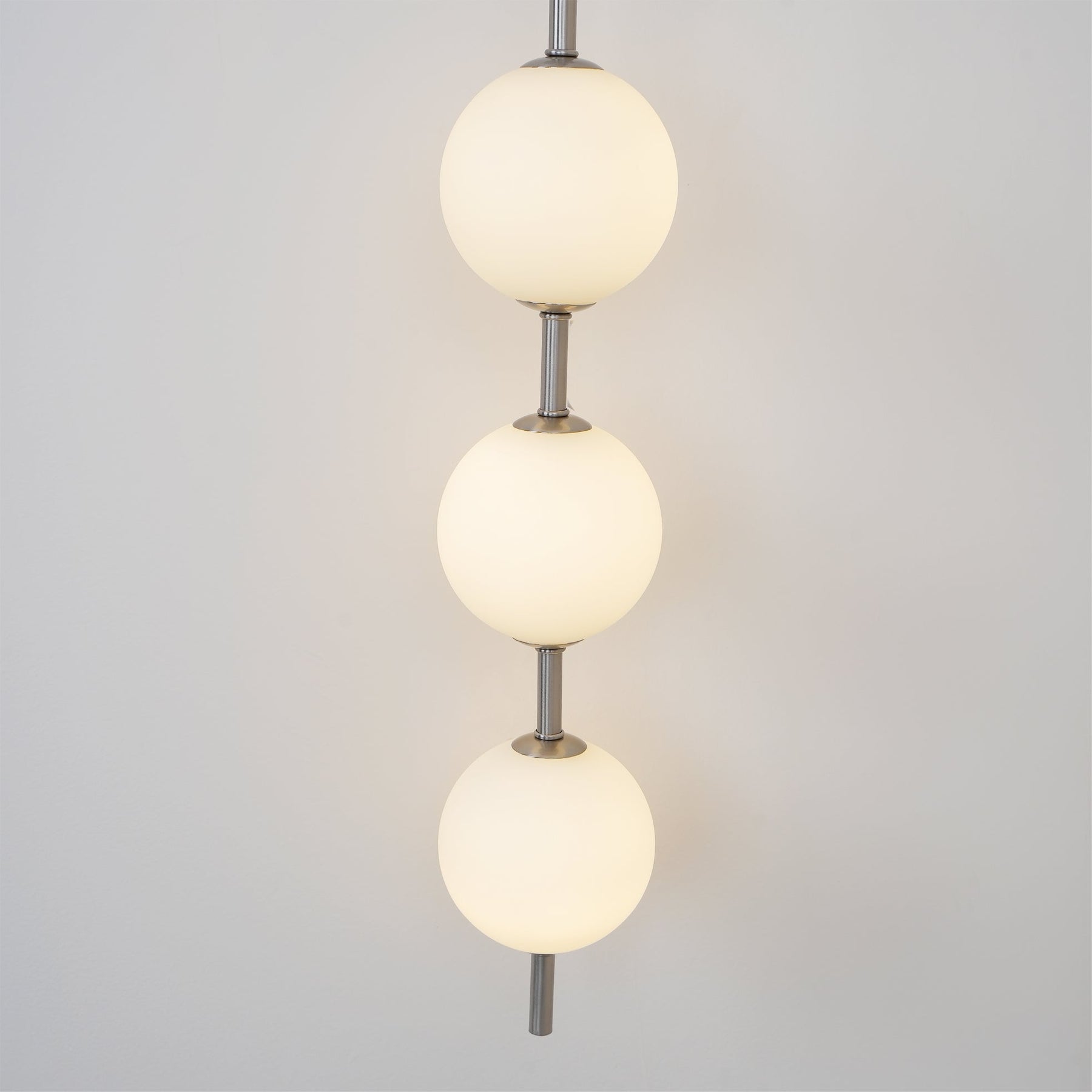 Add stylish lighting to any space with this Vertical Glass Globe Wall Lamp. This sconce makes a welcome addition to your indoor lighting. It features a fixed wall-mounted design with a metal body in a gold finish for a glam, minimalist look. The spherical glass shades in a matte white finish diffuse light with a warm, cozy glow, Just fix it in your bedroom, hallway, study or next to your bathroom mirror for effective lighting.