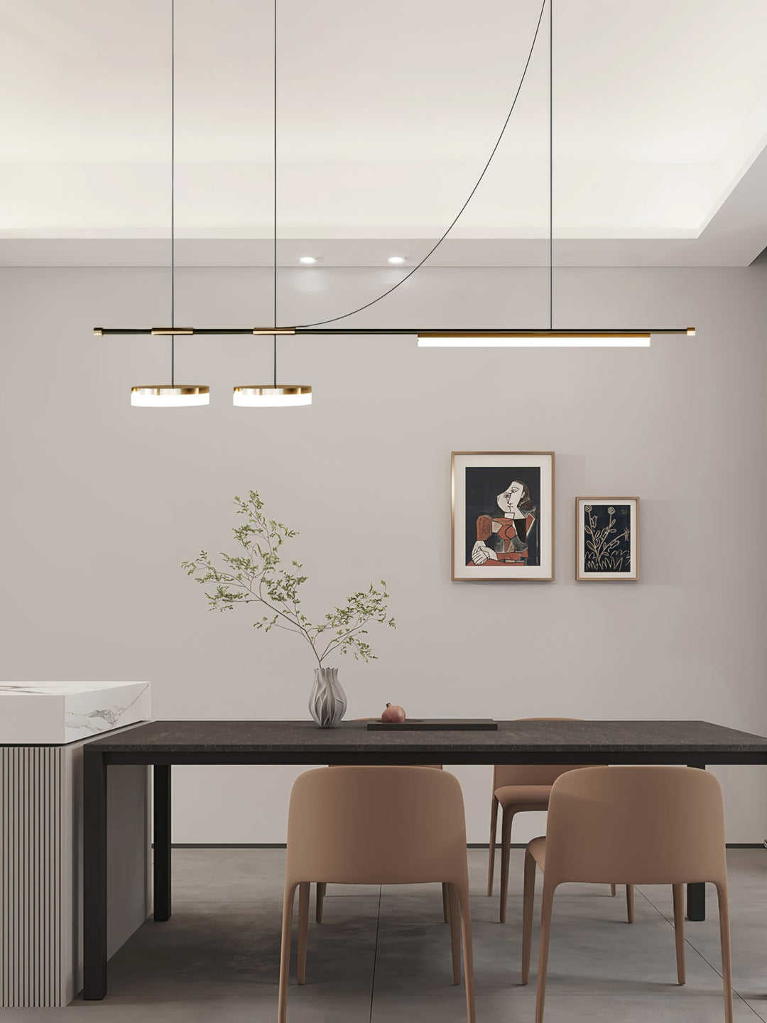 • Multiple Pendants: For long rectangular tables, two or three smaller pendants spaced evenly above the table create a balanced look.