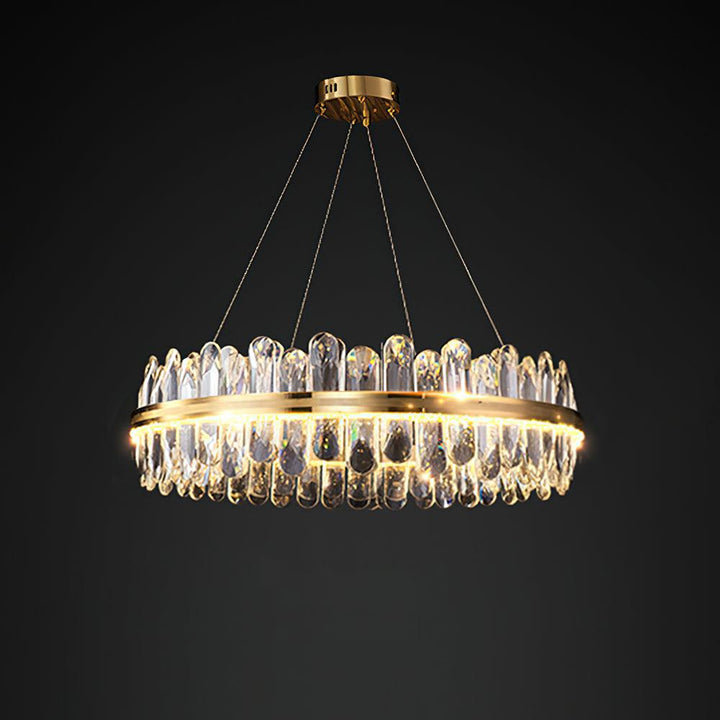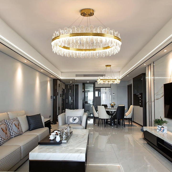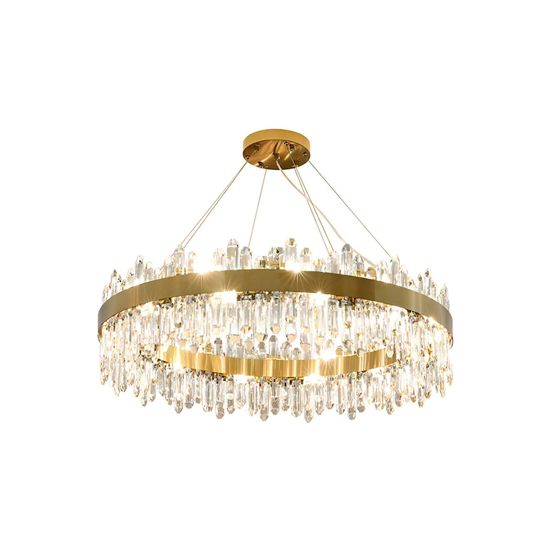 Made from high quality K9 crystal, the Enos Crystal Chandelier features a stunning golden body that enhances its beautiful appearance. It's perfect for decorating any interior space, such as living rooms, dining rooms, and bedrooms. It is environmentally friendly and has a long service life, making it a practical and beautiful choice for your home decoration needs.
