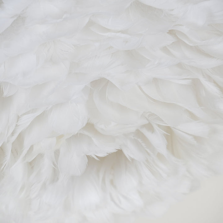 The Feathered Elegance Ceiling Light exudes a soft, ethereal charm with its unique design crafted from delicate goose feathers. This captivating piece diffuses a warm, inviting glow, creating an ambiance of tranquility and sophistication. Perfect for bedrooms, living rooms, or cozy reading nooks, this ceiling light adds a touch of nature-inspired beauty and a sense of calm to any interior space.