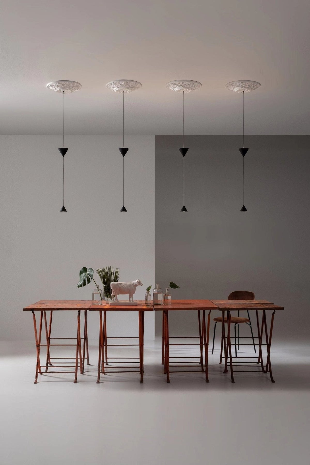 - Multiple Pendants: For long rectangular tables, two or three smaller pendants spaced evenly above the table create a balanced look.