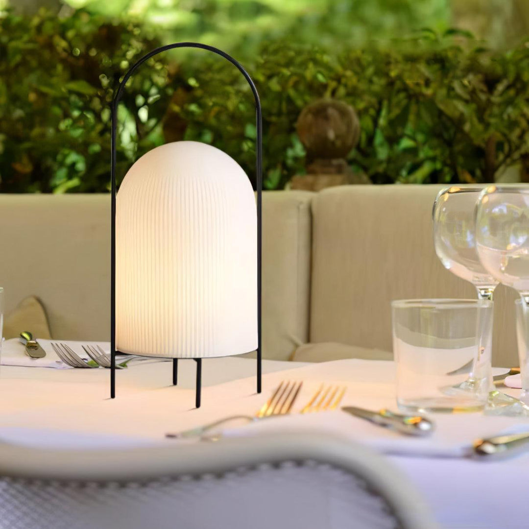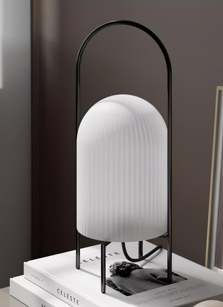 Brighten any room with the portable Ghost Table Lamp. Featuring a milk-white glass dome-shaped lampshade and a metal stand with an arched rod for easy mobility, this lamp casts an attractive ghost-like glow with its recessed lampshade. Put it up for a touch of elegance and light.