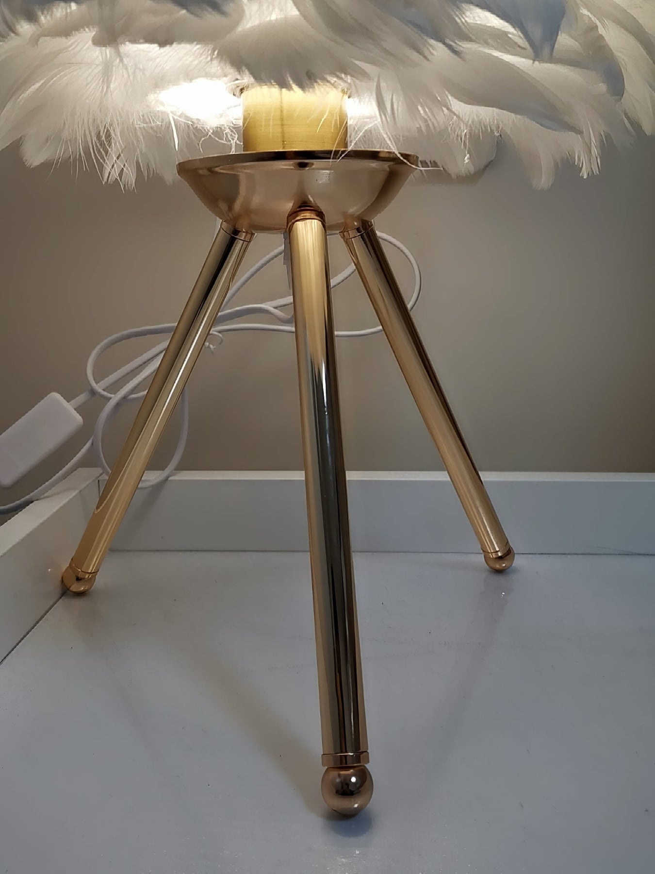 Tripod table lamps have consisted of high-quality metal material, feather shade that is perfectly combined with the warm tone of the lamp’s illuminated, creating a comfortable environment to read, to work, to rest, without hurting your eyes.