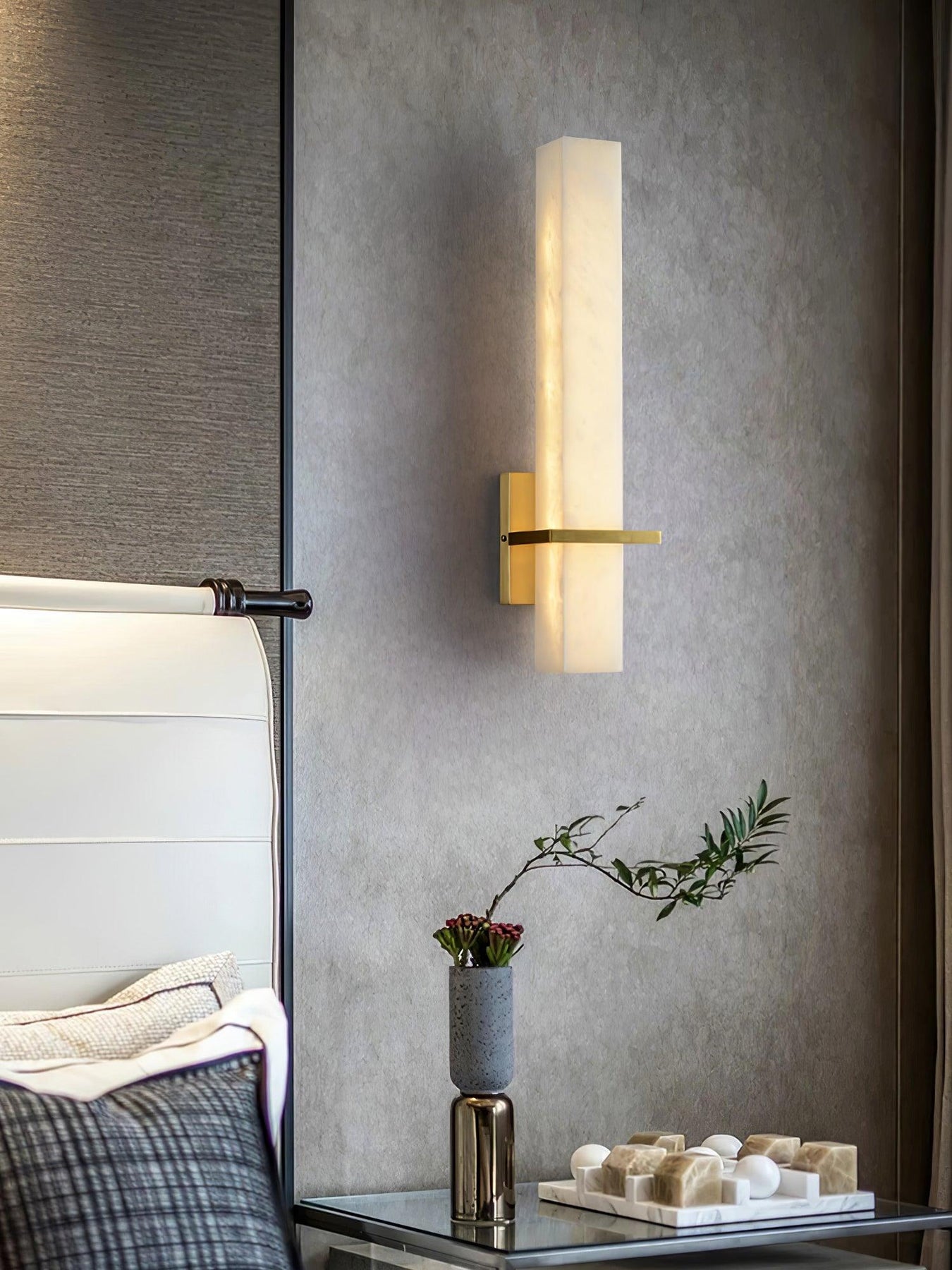 Task Lighting: Bedside lamps or wall sconces should be proportionate to the size of the nightstands and the bed. The lamp height should be roughly at eye level when sitting in bed.